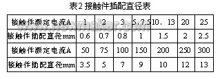 再根據計算出的接觸件額定電流值查出接觸件插配直徑(見表2)。