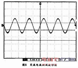 圖8所示是數字控制逆變器的交流電流測試波形,由圖8可以看出,本系統的交流輸出電流十分穩定,完全能夠滿足設計要求。
