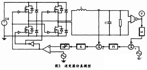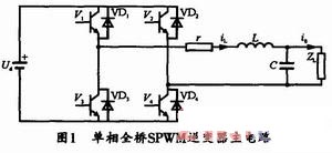 圖1所示為單相全橋逆變電源的主電路原理圖。圖中,Ud是逆變橋直流輸入電壓。L是輸出濾波電感,C是輸出濾波電容,r是輸出電感、死區效應以及濾波電容的等效電阻。