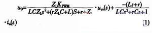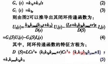 對于圖1所示的單相全橋逆變器,可得到下面的單相逆變電源的連續域數學模型式: