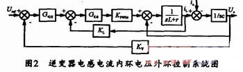 本文的雙閉環控制結構由外環電壓調節器和內環電流調節器組成。其中外環電壓調節器Gv(s)一般采用比例一積分(PI)調節器,內環電流調節器Gi(s)可以采用比例(P)調節器。圖2所示是逆變器電感電流內環電壓外環控制系統的結構框圖。