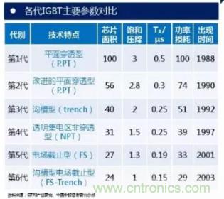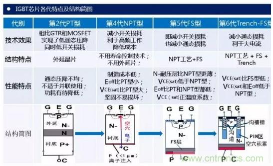 1985年前后美國GE成功試制工業樣品(可惜后來放棄)。自此以后, IGBT主要經歷了6代技術及工藝改進。