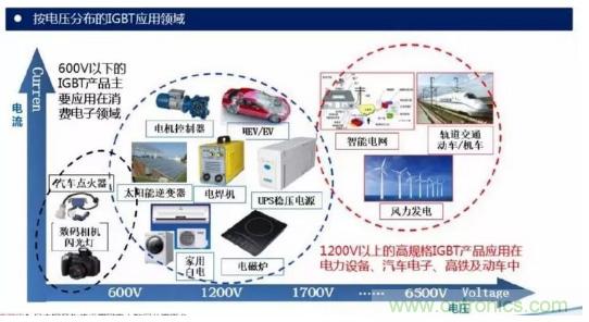 作為新型功率半導體器件的主流器件,IGBT已廣泛應用于工業、 4C(通信、計算機、消費電子、汽車電子)、航空航天、國防軍工等傳統產業領域,以及軌道交通、新能源、智能電網、新能源汽車等戰略性新興產業領域。