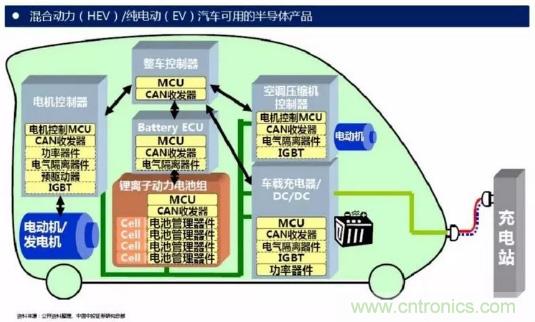 A)電動控制系統 大功率直流/交流(DC/AC)逆變后驅動汽車電機;B)車載空調控制系統 小功率直流/交流(DC/AC)逆變,使用電流較小的IGBT和FRD;C)充電樁 智能充電樁中IGBT模塊被作為開關元件使用;