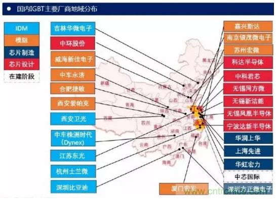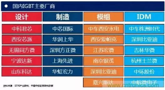 從公司來看,國外研發IGBT器件的公司主要有英飛凌、 ABB、三菱、西門康、東芝、富士等。中國功率半導體市場占世界市場的50%以上,但在中高端MOSFET及IGBT主流器件市場上,90%主要依賴進口,基本被國外歐美、日本企業壟斷。