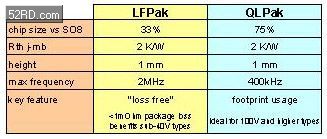 圖 3: 盡管LFPak和 QLPak 的封裝區域與SO8同為 6 ′ 5 mm,但這兩種封裝之間卻存在明顯的差異,詳見下表2。