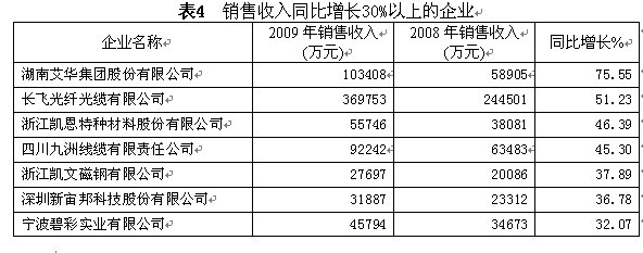 由于2009年受到金融危機的打擊,許多元件百強企業的生產經營受到極大影響。僅有35家企業的銷售收入增長超過10%,比上屆的41家還少,更遠低于第21屆時的65家。僅有湖南艾華集團股份有限公司、長飛光纖光纜有限公司兩家企業的09年銷售收入同比增幅超過50%,分別增長了75.55%和51.23%。而上一屆,銷售收入同比增幅超過50%的企業仍有7家。值得一提的是四川九洲線纜有限責任公司,2008年的銷售收入增長110.16%,2009年的銷售收入再次增長45.30%,兩年間的平均增長率達到74.75%,獲得如此驚人的發展速度十分難得。