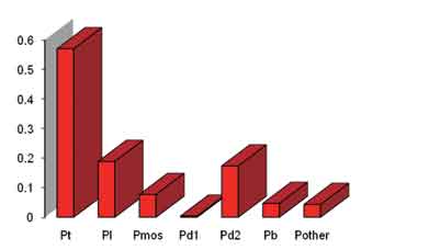 各功率器件的損耗如圖2所示。在圖2中,Pt是原邊變壓器損耗;Pl是輸出濾波電感的損耗;Pmos是MosFET的損耗;Pd1是整流二極管的損耗;Pd2是續流二極管的損耗;Pother是其他器件的損耗和。