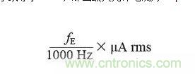 IEC 60601是國際電工委員會針對醫療電氣設備安全性和有 效性發布的一系列技術標準。標準規定,正常情況下通過人體的最大直流漏電流為10 μA,在最壞的單一故障狀況下為50 μA。最大交流漏電流取決于激勵頻率。如果頻率(fE)小于或等于1 kHz,那么最大允許電流為10 μA rms。如果頻率大于1 kHz,則最大允許電流為