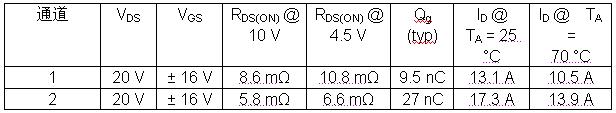 例如,常規雙MOSFET的PowerPAK 1212-8的導通電阻大約是30mΩ,最大電流不到10A,因此不是可行的方案。單MOSFET的PowerPAK 1212-8的導通電阻降至5mΩ左右。SiZ700DT中低邊溝道的MOSFET具有類似的導通電阻,在10V和4.5V電壓下的導通電阻分別為5.8mΩ和6.6mΩ,在+25℃和+70℃溫度下的最大電流分別為17.3A和13.9A。除此以外,高邊溝道的MOSFET在10V和4.5V電壓下的導通電阻分別為8.6mΩ和10.8mΩ,在+25℃和+70℃溫度下的最大電流分別為13.1A和10.5A。
