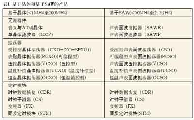 在有線與無線市場迅猛增長的推動下,石英晶體及其高頻版SAW器件正廣泛用于各個領域,小到電子玩具中簡單的無源石英晶體,大到用于最先進的電信網絡骨干網定時的復雜同步定時模塊(STM),如表1所示。