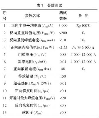 測試研制生產的器件,以規格是直徑48 mm/3 000 A/200 V的器件為例,記錄實測結果如表1所列。