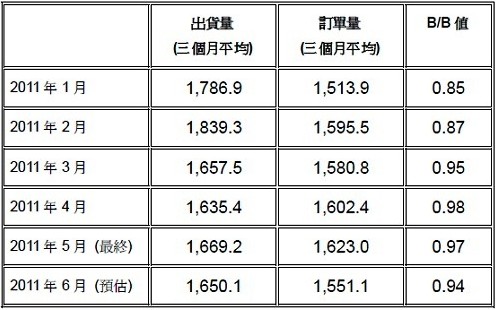 最新消息,據外媒報道,根據SEMI最新Book-to-Bill訂單出貨報告,2011年6月份北美 半導體 設備制造商三個月平均訂單金額為15.5億美元,B/B值 (Book-to-Bill Ratio,訂單出貨比 )為0.94.代表半導體設備業者三個月平均出貨100美元,接獲94美元的訂單。