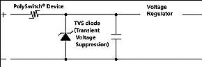 采用PolySwitch器件來取代上述應用中的正向導通二極管(見圖2),提供了包括減少電壓降等多項優勢,這是因為聚合物正溫度系數(PPTC)器件兩端的電壓降一般在0.1V以上。其次,聚合物正溫度系數(PPTC)器件可對其他類型的電子部件提供額外的保護(伴熱、導線、繼電器和固態部件等)。