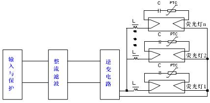 上圖中,假設熒光燈1 去激活,則PTC1 動作,燈1 的燈絲電流接近為0;但其它熒光燈的工作不會受到影響。這樣,用戶就不必為到底是哪只燈壽命終了或者是鎮流器損壞這樣的問題而困擾。