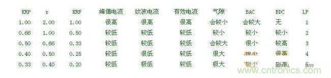 4、KRP從1.00下降至0.33時,BDC急劇增大,氣隙的大小與磁性元件的設計有關,由于對比中的NP會有所不同,所以氣隙、BDC、BAC的變化趨勢僅僅是起有限的參考作用;