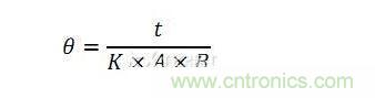 變量l是通孔的長度(從頂面銅層到底面銅層)。電路板上焊接電源模塊的地方沒有阻焊層,但對其他區域,PCB設計工程師可能要求在每個通孔的頂部放置阻焊層,否則通孔上面的區域會空缺。由于通孔只連接外銅層,所以其長度為63.4密耳(0.0634英寸)??偼组L度本身的熱阻是167°C/W,如式3所示。