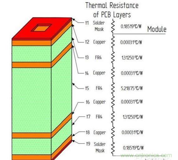 圖6列出了連接電路板各層的每段通孔的熱阻。