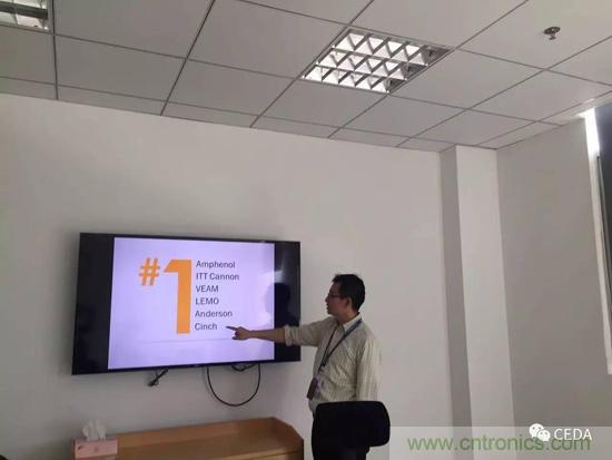 圖2:徐總介紹倍捷連接器授權代理裝配和銷售的主要產品線