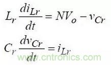 (2)Lr、Cr和電壓源-nVo串聯諧振,滿足下面條件: