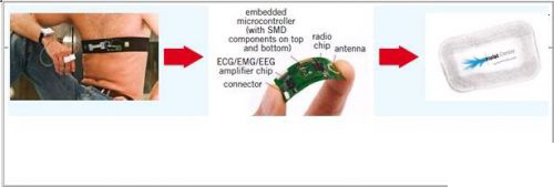 IMEC和霍爾斯特中心正在開發一款心電圖綁帶,該產品像運動員所用的傳統心臟監測帶一樣使用。這款帶子不僅能監測心跳,還可以記錄和傳送完整的心電圖。該設備可供有心臟病的戶外活動愛好者非常方便地使用,或在競技活動中使用(這款帶子已經在布魯塞爾馬拉松里進行過測試)。目的難題在于要將系統小型化和實現足夠水平的自立性。根據應用的不同,可能是要能使用幾天或永久性使用。最終目標是要將這款電子心臟專家集成到一個小盒子中,而這個小盒子要能附著在一條帶子上(圖4),或者能嵌入到一件襯衫里則更好。