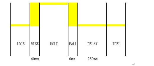 圖4是一個觸摸按鍵應用中一次典型的按鍵波形,每個按鍵按下后,系統都需輸出對應的電壓值以供其他系統檢測。該應用要求響應時間小于等于40ms,當按鍵被長按時,需要一直輸出按鍵電壓,即使按鍵釋放后,仍需250ms時間保持原有按鍵電壓,之后停止輸出按鍵電壓,進入空閑狀態。系統共包含12個觸摸按鍵,當多個按鍵被同時按下時,系統不響應。系統低功耗設計要求為,系統待機時沒有按鍵操作的平均電流應至少小于1mA。